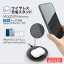 iPhone AirPods 同時充電可能 ワイヤレス充電器 スマホスタンド 2in1 ケース付き充電可能 cp3b5b【アウトレット商品】 マグネット式 2in1 ワイヤレス 充電スタンド MagSafe対応 急速充電 ガンメタル メタルプレート 貼り付けキット USB Type-A to Cケーブル (1.2m) 付属