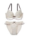 【peachjohn39_1024_kw4_】PEACH JOHN レディース インナー・ルームウェア ピーチ・ジョン【SALE/10%OFF】2段のフリルが華やかなブラ&ショーツセット.盛り胸メイクレースブラセット PEACH JOHN ピーチ・ジョン インナー・ルームウェア ブラ&ショーツセット ブラウン ホワイト【RBA_E】【先行予約】*[Rakuten Fashion]