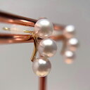 K18 あこや真珠 3粒パールのカーブラインピアス ベビーパール 5mm (真珠 ラインピアス 大人可愛い トレンド オフィス 結婚式)