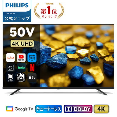 | Philips テレビ 50型 チューナーレステレビ 4K UHD 4kテレビ グーグルテレビ Googleテレビ 50V 液晶テレビ ネット動画 HDR10 Wi-Fi Bluetooth Dolby Audio Netflix Apple TV YouTube 壁掛け スマートテレビ 50インチ 50型テレビ
