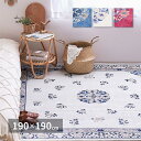 短毛でやわらかく、お手入れも簡単!汚れても手洗いOK。【ポイント9倍!今晩20時開始】ラグ カーペット 絨毯 転写プリントラグ ミュゲ 約190x190cm グ 花柄 手洗い可 正方形 柄 リビング 滑り止め付き ホットカーペット 床暖房対応 オールシーズン