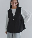 レディライクに決まる"サイドギャザーデザインジレベスト"MAX1,000円OFFクーポン★[ECLAM] サイドギャザーデザインジレベスト ☆ ジレ リネンライク サイドギャザー 切替デザイン 変形ボタン ベスト レイヤード クラム ピエロ 【Pierrot】 送料無料