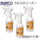 ガラス・鏡・ポリカーボネートに付着したウロコ状の白い汚れを除去。透明感のあるガラス・鏡に蘇ります。ウロコクリーナー 300ml×3本 環境対応型修復洗浄剤 ウロコ汚れ修復洗浄剤 研磨剤不使用 生分解性に優れた 有機酸 送料無料 ビアンコジャパン 業務用洗剤