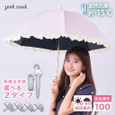pink trick(ピンクトリック) 完全遮光 日傘 遮熱 UVカット 涼しい 可愛い 晴雨兼用の万能傘★ フリル傘日傘 完全遮光 フリル (長傘&まるい3段折りたたみ傘)遮光率100% 紫外線 UVカット 晴雨兼用 傘 軽量 丈夫 1級遮光 −15℃遮熱効果 大人 深張り 日光 竹手元 バンブーピンクトリック 母の日