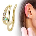 送料無料 イヤーカフ レディース イヤカフ 18k ゴールド ダイヤモンド 片耳用 2連 エメラルド イヤリング 人気 女性 誕生日 プレゼント18金 イヤーカフ 18k レディース 片耳用 右耳 左耳 イヤカフ 2連 ダブルライン エメラルド