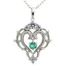 送料無料 プラチナ ネックレス ハート エメラルド ネックレスアラベスク ネックレス オープンハート エメラルド プラチナ ネックレス