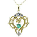 送料無料 ハート ネックレス K18 エメラルド ネックレスエメラルド ネックレス 唐草 オープンハート ネックレス K18 ペンダント