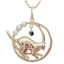 送料無料 ネコ 月 ペンダント 一粒 サファイア ネックレス K10ネコ・月・ペンダント・一粒・サファイア・ネックレス・K10