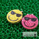 お急ぎ対応可能!! ゴルフの必需品!!プレゼントにも喜ばれます。ゴルフマーカー にこちゃんサングラスデザイン キラキラ プレゼントにもオススメ!! にこちゃんサングラスデザインのスワロフスキーゴルフマーカー
