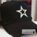 キラキラダメージキャップ帽子は男女問わず人気です!!帽子 スター星デザイン ダメージキャップ スワロフスキー 帽子デコ 選べるカラー キャップデコ プレゼント