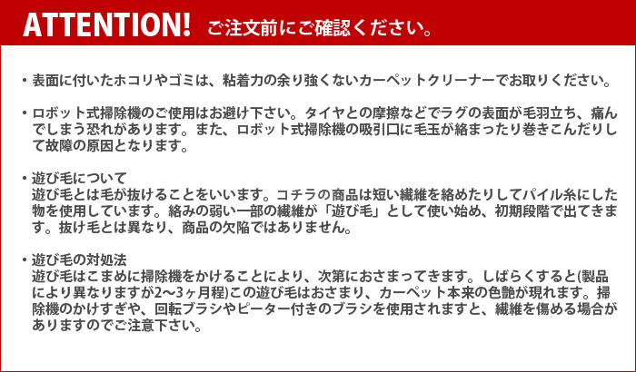 | ■ブランド | Detail (ディティール) | | ■サイズ | 80×50cm 140×100cm 160×120cm 200×140cm 200×200cm | | ■素 材 | アクリル、ポリエステル、コットン、レーヨン | | ■備 考 | ・洗濯OK ・ホットカーペット、床暖房対応 ・裏面滑り止め加工(80×50cmのみ) |