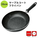 耐久性が高くなるマーブルコーディングを施した26cmフライパン。焦げ付きにくいのに長持ち。マーブルコート フライパン 26cm IH ガス 対応 軽い 軽量 マーブルコーティング 焦げにくい 焦げない こびりつきにくい ミニ 調理器具 料理 型 深め 深型 炒め物 長持ち 丈夫 新生活