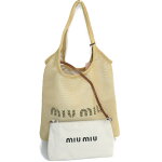 MIU MIU ミュウミュウ レディース トートバッグ 5BG231 2DO5 F0018 RAFFIA LOGO BEIGE