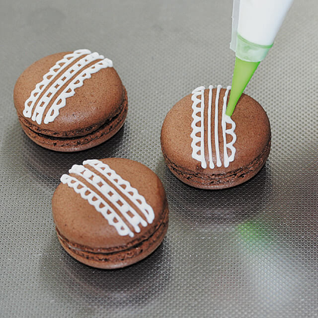 | ■付属品:ベーキングペーパー1枚、ガイドシート1枚、マカロン用絞り袋1枚、アイシング用絞り袋1セット |