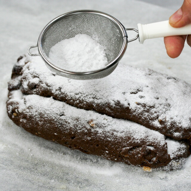 シェフおすすめの小麦粉・クーベルチュールチョコレートを使った生地にチョコチップ、くるみとドライクランベリーをたっぷり入れて、バランスのとれた甘さとコク、しっとりとした食感のシュトーレンに仕上げます。