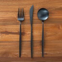 GOAのフォルムとほぼ同じで、柄まですべてステンレスを使い、 その上にブラックの色を丁寧に蒸着させています。 耐久性が良くいつまでもダークな輝きを失いません。 手作りで人間工学に基づいた使いやすいフォルムはそのまま、モダンアートのように研ぎ澄まされた スタイリッシュなカトラリーは、和食器や漆器にも似合います。