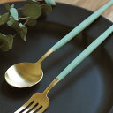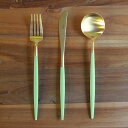 上品に輝くゴールドと淡いセラドングリーン(青磁色)のコンビネーションが新鮮。シンプルながらもひとひねりあるカラーリングはほど良い個性を放ち、日々の食事シーンを優しく彩ります。カトラリーは脇役と考えがちですが、このカトラリーは料理や器を引き立てドレスアップしたテーブル作りにひと役買ってくれる主役級の存在感です。