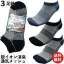 送料無料!消臭効果の銀イオン使用の メッシュ 先丸靴下3足組 消臭 靴下 メンズ ショート 銀イオン メッシュ くるぶし丈 先丸 3色 3足 24.5〜27cm ソックス 夏 抗菌 軍足 AG721 | メンズソックス くるぶしソックス ショートソックス 消臭靴下 蒸れない 夏用 涼しい 作業用 まとめ買い セット
