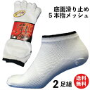 送料無料!滑らずふんばりのきく靴下がメッシュで快適踏ん張りがきくすべり止め付 五本指靴下 ショートソックス メッシュで蒸れず快適 白 2足組 くるぶし丈 24.5〜27cm 軍足 SR923 [ 靴下 メンズ 夏用 メッシュ 5本指 綿 送料無料 ] まとめ買い セット