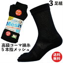 送料無料!コーマ糸で履き心地ソフトな5本指メッシュ蒸れない快適メッシュ 5本指靴下 高級コーマ綿糸でソフトな履き心地 黒 3足組 メンズ ソックス 25〜27cm 軍足 1925 [ 靴下 紳士 夏用 メッシュ 五本指 綿 送料無料 ] まとめ買い セット