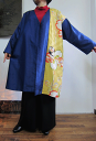 値下げしました!2025/7/23 \16,000↓シルク調の光沢を粋にこなす大人のネイビーロングコートに和柄コンビネーションがインパクト