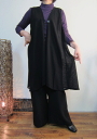 値下げしました!2023/12/30 \10,000↓ショール感覚で気軽にどうぞ。滑らかな黒と光沢の絣生地がマッチした創作ロングベスト 1着限定