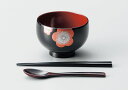 | 送料無料!可愛くて縁起物の梅柄越前塗 うめ お子様汁椀 はしスプーンセット 溜内朱