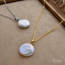 ちょっと大ぶりのコイン型淡水パールをひと粒使ったネックレス。ゴールドカラー・ステンレスの2タイプ。スライドボールで微妙な長さも調整可能。レイヤードスタイルが楽々決まる。淡水パール コイン ネックレス R-days ゴールドカラー ステンレス 長さ調整 スライドボール 真珠 パール 低アレルギー アレルギー 汗 レイヤード 大ぶりパール アクセサリー レディース ※「ゆうパケット」送料無料