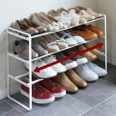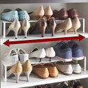 伸縮自在の3段シューズラック!シューズラック 山崎実業 伸縮 3段 スリム 省 スペース 靴収納 下駄箱 靴 ラック 収納 玄関 シンプル おしゃれ 玄関収納 伸縮シューズラック フレーム3段