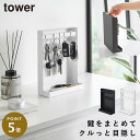 クルっと回して目隠し。2段のトレイ付きキーフックスタンド。目隠しキーフックスタンド タワー 2段 山崎実業 tower キーフック スタンド キーフックスタンド 玄関 鍵収納 おしゃれ モノトーン ホワイト ブラック 10340 10341