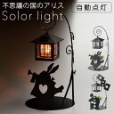暗くなると自動点灯して雰囲気たっぷり!ソーラーライト 屋外 玄関照明 明るい オーナメント 不思議の国のアリス おしゃれ ソーラーオーナメント ラッパウサギ 簡単設置