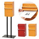 厚さ3cmまでの荷物が入るガルバリウムスタンド付きポストポスト スタンドポスト 郵便ポスト 鍵付き スタンドタイプ 置き型 スタンド モダン 北欧 おしゃれ キーロック 黒 木目調 壁掛けポスト スタンド付き 返品不可 キャンセル不可 返品不可 キャンセル不可