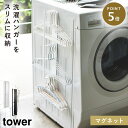 洗濯機横にマグネットで簡単設置できるラック洗濯機横マグネット収納ラック マグネット tower タワー 山崎実業 洗濯機横 洗面所 浮かせる収納 ホワイト ブラック ホースホルダー付き洗濯機横マグネットラック タワー