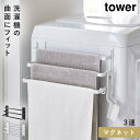 洗濯機の曲面にフィット。マグネットで簡単取付のハンガー3連洗濯機前マグネットタオルハンガー タワー 3連 バスタオル 足ふきマット 乾かす マグネット 側面 全面 洗濯機前マグネットタオルハンガー tower 3連