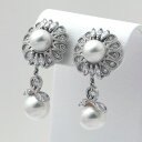 | 優雅なヨーロピアンテイスト あこや真珠のイヤリングPT900 あこや真珠 ダイヤモンド イヤリング