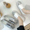 きらきら 履きやすい 疲れない ぺたんこ\楽天ランキング入賞/ スリッポン レディース ビジュー ラインストーン キラキラ かわいい サイドゴア シルバー ホワイト 送料無料