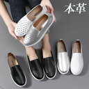 かわいい 履きやすい スニーカー 紐なし 婦人靴スリッポン レディース 本革 レザー 星柄 星型抜き 新作 春 夏 サイドゴア ブラック ホワイト シルバー 送料無料