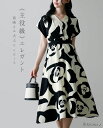 送料無料【洗えるワンピ】ORIGINALS【ワンピース ラ フロレゾン】44-a23 春 秋 冬 きれいめ キレイめ 上品 シンプル エレガント 通勤 膝下 ロング 七分 ラウンド スリット 小さいサイズ お家洗い可 レディース レジーナ 神戸 ワンピース