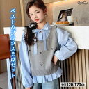 着回し自在のベスト&プリーツシャツで、簡単に大人可愛いスタイルが完成 ニットベスト レイヤード トップス シャツ ブラウス 120cm 130cm 140cm 150cm 160cm 170cm ブルー グレーリボン柄ベスト&プリーツブラウス2点セット シャツ ベスト 子供服 キッズ ジュニア 女の子 ガールズ トップス セットアップ ブランド プリーツ かわいい おしゃれ レイヤード 綿 大人可愛い 女の子 ガールズ ジュニア こども 通学