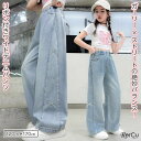 甘さとカジュアルの絶妙バランス♪サイドのきらきらリボン刺繍が目を引くワイドデニムパンツ。通学やお出かけにぴったりなガーリーカジュアルスタイル♪毎日のコーデが楽しくなる!パンツ ズボン ワイドデニムパンツ 女の子 ガールズ ジュニア 小学生 キッズ 韓国風 カジュアル 通学 ゆったり パンツ 動きやすい ウエストリボン リボン刺繍 春 秋 夏 ストリート風 かわいい おしゃれ 子供服 ガールズデニム 120cm 130cm 140cm 150cm 160cm 170cm