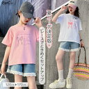 リボンプリントTシャツ×レース付きデニムで甘カジュアルに。夏のおしゃれも動きやすさも叶える、ガーリー好きにぴったりな上下セットアップ。毎日のおしゃれがもっと楽しくなる一枚。ガールズ セットアップ 上下セット キッズ Tシャツ デニム ショートパンツ 半袖 ハート柄 フリルスリーブ ウエストゴム 可愛い ガーリー おしゃれ 楽ちん コーデ 公園 遊び着 通園 通学 夏服 春服 子供服 ジュニア 女の子 夏コーデ 韓国風 120 130 140 150 160 170