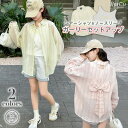 背中にリボンをあしらった透け感シアーシャツと、ロゴ入りノースリーブの2点セット。軽やかで着心地も抜群、春夏の通学やお出かけにぴったり!おしゃれキッズにおすすめのセットです。シアーシャツ タンクトップ 2点セット 女の子 キッズ ジュニア カジュアル ガーリー ロゴ入り 夏コーデ フリル襟 刺繍入り ギンガムチェック ウエストゴム 夏服 清楚 可愛い おしゃれ 韓国風 通学 双子コーデ リンクコーデ 着回し 120cm 130cm 140cm 150cm 160cm 170cm