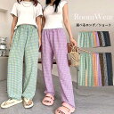 ブラック ホワイト 黒 白 ベージュ ブルー グレー グリーン【全品11%OFF!22H限定】パンツ ボトムス ズボン ロング レディース ワイドパンツ ストレートパンツ リブ 凸凹デザイン ブロックチェック ウエストゴム 涼しい 春夏 夏パンツ (送料無料)[郵2]^b402^ sale セール