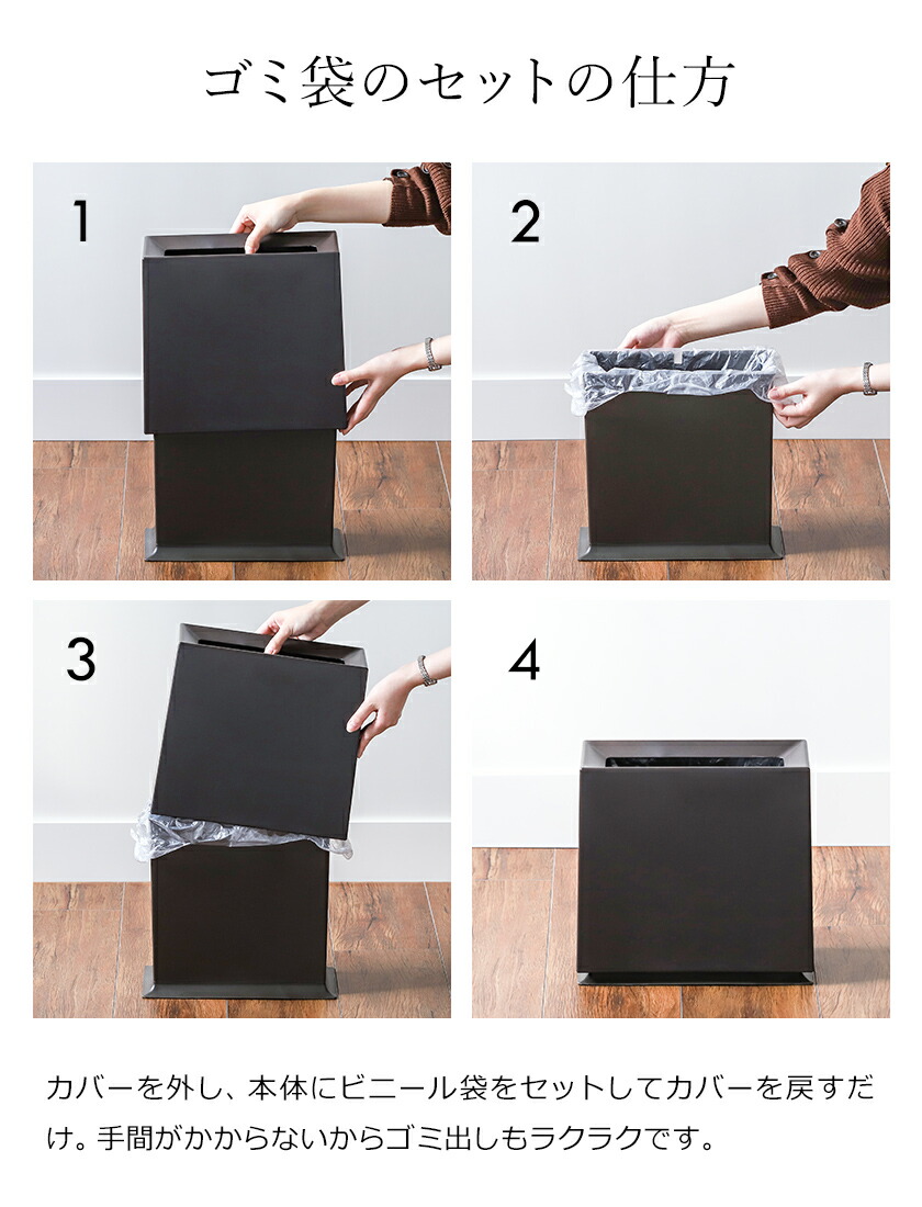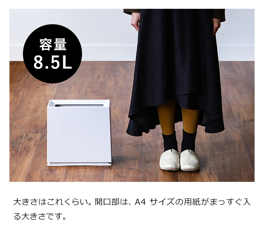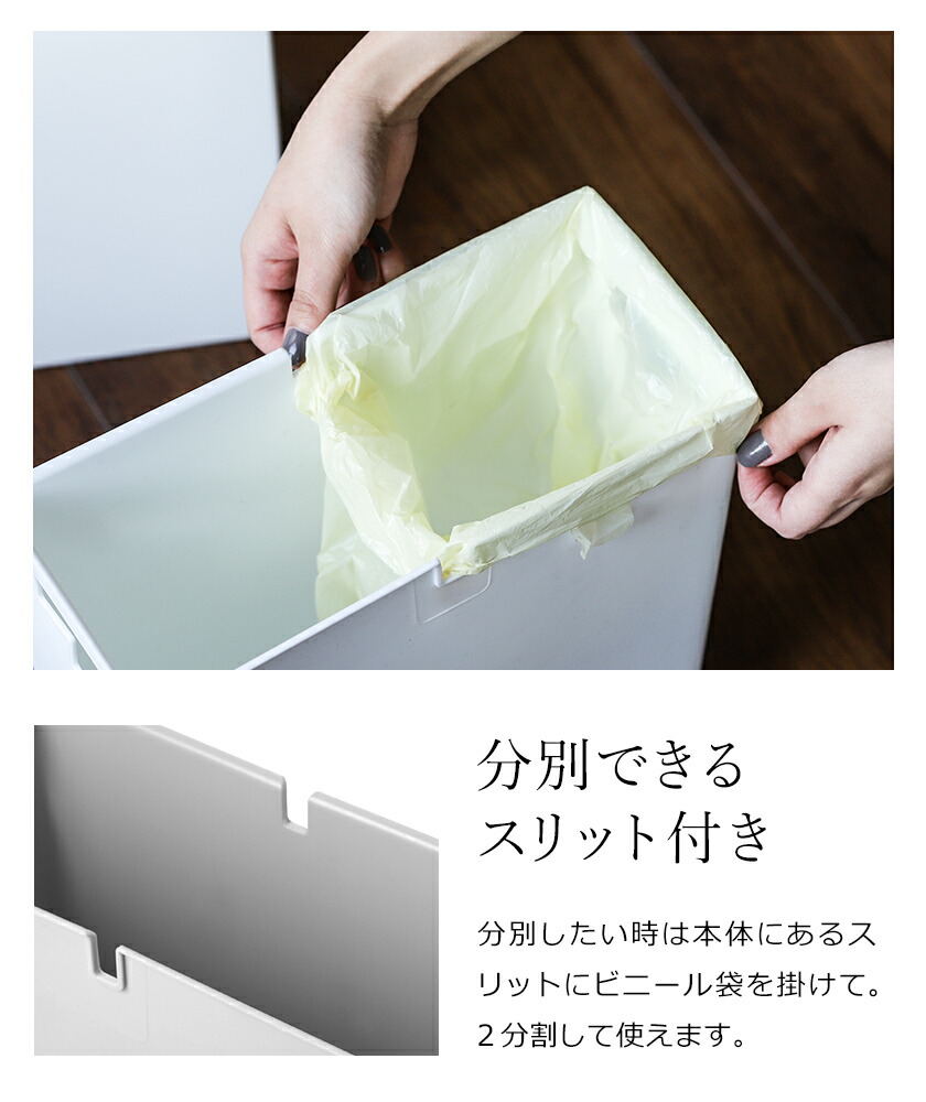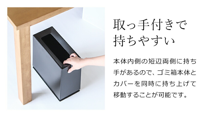 発売以来、“ ゴミ箱界のスタンダード ”としてロングセラーを誇る「 TUBELOR 」シリーズ。スリムなスクエア型の『 ideaco TUBELOR BRICK( イデアコ チューブラーブリック )』は、壁面に沿ってまっすぐ置けるのが◎。移動したい時は片手で持ち上げられるよう内側に持ち手があるのも嬉しいポイントです。生活感が出てしまうビニール袋をカバーで隠す二重構造で、どこに置いてもシックな佇まいでインテリアに馴染みます。
