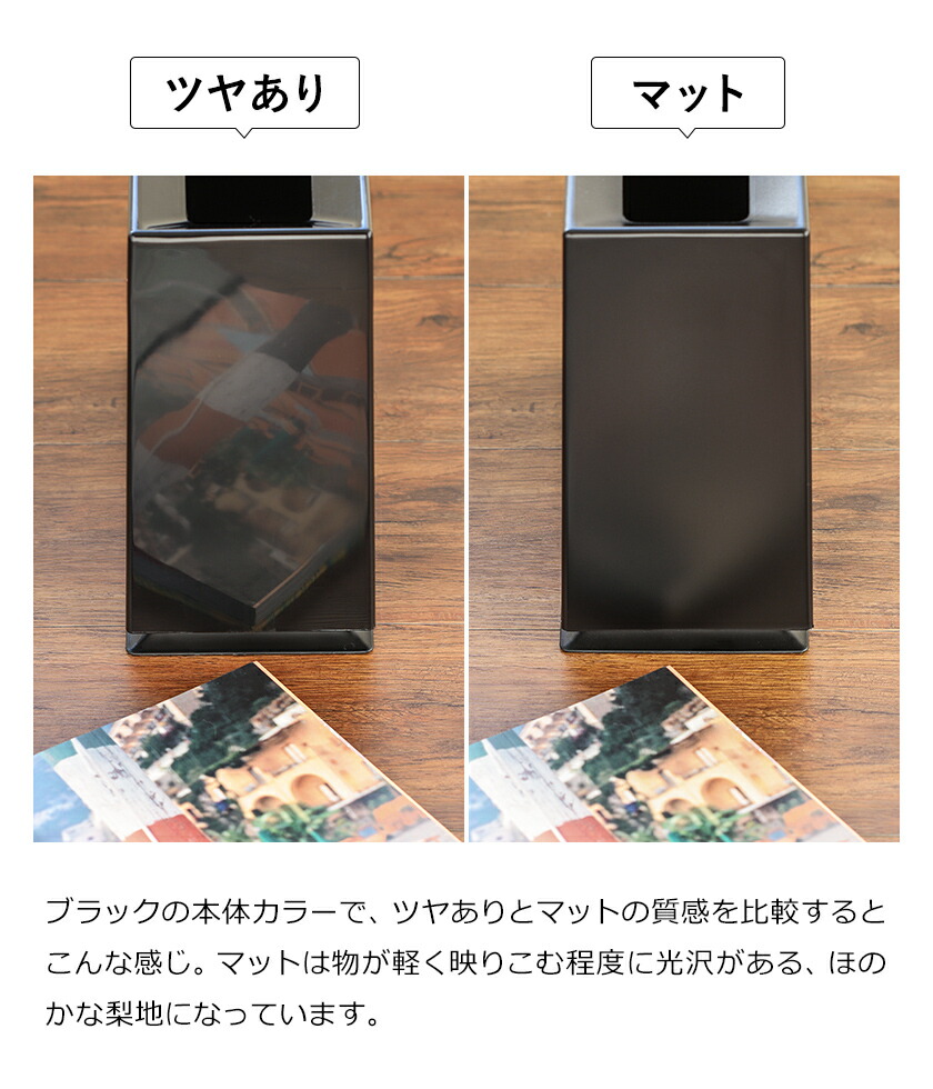 マットグレーを購入。思ってた色と質感で大満足です!部屋の角に置くのにちょうど良いです。
