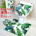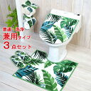 奥行きと深みを感じるカット&ループの葉が美しいトイレタリーシリーズトイレマットとフタカバー2点セット モンステラ M+HOME エムプラスホーム 抗菌・防臭吸水素材 おしゃれ グリーン 日本製