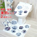 ホワイトベースで爽やか。淡いフラワーモチーフでやさしい雰囲気に。ラネージュ トイレ2点セット(普通・洗浄暖房 兼用タイプ) トイレマットとフタカバーのセット