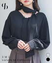 【ボウタイリボンで楽しむとろみ素材のブラウス】ボウタイリボン 取り外し可能 オケージョン オフィス おでかけ 日常使い セゾンドパピヨンシャツ トップス レディース 長袖 ブラウス ボウタイ付き フリンジ加工 ギャザー入り とろみ素材 バルーンスリーブ 比翼仕立て カフス ダブルボタン カフス 通勤 学校行事 春 秋 冬 きれいめ 女の子 SAISON DE PAPILLON sdp0334