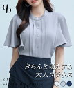 【ボウタイ風デザインが映えるきれいめなスタンドカラーブラウス】セミフォーマル オフィス きれいめ 大人きちんと感 セゾンド パピヨン【一部予約】ブラウス レディース トップス スタンドカラー 五分袖 五分丈スリーブ ボウタイ風デザイン 薄手 丈長 ボリューム袖 バックファスナー付き オケージョン 入学式 卒業式 オフィスカジュアル SAISON DE PAPILLON sdp0199