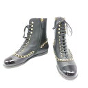 あこがれのCHANELをお手頃な値段でご提供いたします。【送料無料】CHANEL シャネル ショートブーツ 革ひも通しチェーン金具 ブラック【中古】【送料無料】